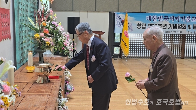 오전 11시부터 시작된 창립 기념법회는 대불총의 중앙회 및 시도 임원들과 회원, 그리고 응천스님을 위시한 호국승병장 스님들 130 여명이 참석한 가운데 진행된 이 날 법회는 응천스님의 타종으로 시작하여 박희도 상임대표와 임선교부대표의 헌향, 헌화에 이어 스님들과 임원, 시도회 대표들의 헌화로 이어졌다.