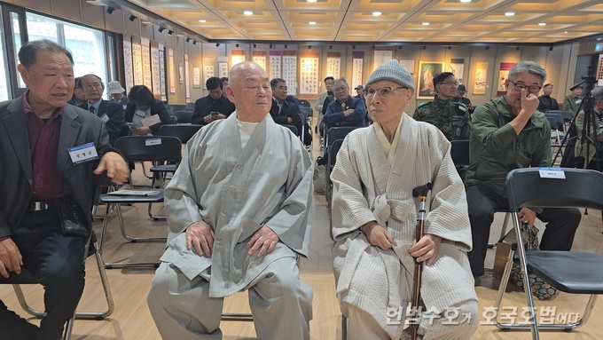 이어서 해안큰스님의 격려사와 이영주 예불연 회장(전 해병대 사령관) 의 축사가 있었다.