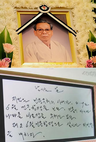故 강희남 목사가 親北 좌파세력들 사이에는 ‘통일운동가’로 또 기독교 성직자로 존경받는 인물(?) 인지는 모르지만 대한민국을 사랑하는 애국세력들 사이에는 김일성, 김정일을 추종하는 인물, 종교인의 탈을 쓴 빨갱이 세력으로 알려져 있다. 기독교계에서는 그가 예수를 섬기는 ‘목사’가 아니라 김일성이 만든 ‘김일성 主體思想敎’ 를 믿고 선전하는 김일성, 김정일 광신도라고 비판하며 “기독교 망신을 다 시켰다” 고 비난하고 있다. 故人이 좀처럼 힘든 米壽 (미수-88세) 까지 살아오면서 이제 그 생명이 얼마나 남아있는지도 모르지만 하필 노무현이 자살한지 며칠 지나지 않은 ‘현충일’ 날에 “국가를 떼려 엎어 버리고 대통령 리명박을 내치자” 는 섬뜻한 유서를 남기고 집 보일러실에서 목을 매 自殺했다는 사실은 복잡한 의미를 남기고 있다. 親北 김정일 추종 세력들- 左派 빨갱이 세력들 사이에는 강희남 목사가 남긴 ‘이 목숨을 민족의 제단에’ 라는 붓글씨 유서가 큰 보물단지나 되는 것처럼 빈소 벽에다가 붙여놓고 전시하고 있다. 故人은 “지금은 民衆主體 (민중주체) 의 시대이다. 4.19와 6월 민중 항쟁을 보라. 민중이 아니면 나라를 바로 잡을 주체가 없다. 제2의 6월 항쟁으로 살인마 리명박을 내치자” 고 선동했다. 그가 남긴 유서의 내용도 문제지만 북한이 밥 먹듯 사용하는 ‘민중’ ‘주체’ 같은 단어를 쓴 것이나 “살인마 리명박을 내치자” 는 표현은 김정일과 그 추종세력들이 북한 언론매체와 함께 상투적으로 사용하는 표현이다. 목사의 신분으로 자살한 그는 노무현에 이어 자신이 목을 매고 유서를 남기면 이 땅에 제2의 6.10 항쟁이 일어날 것으로 믿었던 모양이다. 6월 10일을 4일 앞두고 유언장에다가 북한의 주장을 앵무새처럼 되뇌인 그는 천국이 아닌 공산주의자들의 유토피아를 찾아 갔다. 그런데 개신교계에서는 ‘강희남 목사’ 라고 표현하는데 상당한 반감을 가지고 있다. “그는 목사가 아니라 성직자의 탈을 쓴 빨갱이로 자신의 신분과 사상을 감추기 위해 종교인으로 둔갑했다” 고 판단하기 때문이다. 우선 정상적인 목사라면 절대로 自殺 할 수가 없다. 또한 “리명박을 내치자” 같은 용어를 사용하지 못한다는 것이다. 북한에서 “내치자” 라는 뜻은 “죽여라 “ “죽여서 버려라” 하는 뜻을 담고 있다. 기독교에서는 自殺을 죄악시 한다. “너희 몸은 너희가 하나님으로부터 받은 바 너희 안에 계신 성령의 것인 것을 알지 못하느냐? 너희는 너희 자신의 것이 아니니라” 고 성경에 기록되어 있다. (고린도 전서 6장 19절) 즉 인간은 하나님이 지으신 피조물이기 때문에 하나님의 것이라는 뜻이다. 또 10계명에도 “살인하지 말라” (제6조) 고 명시되어 있다. 하나님이 주신 생명을 자신의 것이라고 생각해 자살이라는 저주의 죄를 범하지 말라는 뜻이다. 예수 그리스도를 믿는 크리스찬들이라면 평신도든 목사든 모두가 아는 성경 말씀이다. 그런데 일반 평신도가 아닌 양떼를 인도한다는 목사가 어떤 이유에서든 자살을 했다는 사실은 예수를 분노케 하고 하나님을 화나게 만드는 죄악이다. 기독교에서는 銀돈 30개를 받고 대제사장들에게 예수를 팔아 넘긴 가롯 유다와, 예수를 살릴 수 도 있었던 총독 빌라도가 예수를 유대인들에게 넘겨준 죄값으로 훗날 자살 한 것처럼 自殺은 저주라는 것으로 알고 있다. 그런 크나큰 죄악을 목사가 저질렀다는 사실에 대해 기독교 등 종교계에 침투한 김정일 붉은무리들의 준동이 위험수위를 넘었다는 사실을 다시한번 입증한 셈이다. 그래서 “강희남씨는 결코 목사가 아니라 종교가의 탈을 쓴 惡靈 (악령), 즉 김일성-김정일 종교를 신봉하는 공산주의자”라는 것이다. 그를 목사라고 부르기 보다는 좌파언론들이 불러주는 ‘통일운동가’라는 호칭이 오히려 더 맞을 것 같다는 생각이다. 그런데 그가 바라는 統一, 그가 꿈꾸는 統一 이란 것이 민주주의와 시장경제를 지키려는 자유 대한민국을 위한 통일이 아니라 ‘우리끼리-민족끼리’를 외치는 ‘조선민주주의인민공화국’ 김일성-김정일 절대군주를 위한 통일, 그것을 위해 살아온 한 평생이었다는 사실이다. 한마디로 “살아있는 예수를 믿는 것 보다는 평양 금수산 궁전에 미이라가 되어 있는 죽은 김일성을 더 믿었다는 사실이 저주받은 것이며 잘못 됐다”는 것이다. 강희남씨는 노무현 투신에 이어 자신이 자살하면- 김정일이 대규모 조문 사절단을 보내고- 자신이 남긴 유서에 따라- 자신이 표현한 民衆들이- 6월 10일에 들고 일어나 리명박을 청와대에서 끌어 내리고- 자유 대한민국이 무너져 김정일이 대한민국을 접수 할 수 있을 것으로 생각했는지도 모른다. 그러나 과연 4천800만 한국 국민들 중에 얼마 만큼의 국민이 그의 죽음에 안타까워 하고 있는가? 많은 국민들은 고개를 꺄우뚱하면서 “살 만큼 살아온 노인을 저렇게 만드는 것이 바로 북한 광신교 구나?” 하는 생각을 하게 만든다. 즉 오도되고 굴절된 사상의 노예가 되어 마치 그들이 부르짖는 김정일의 총폭탄처럼 자살했으니 말이다. 더욱이 목사라는 성직자가 “민중이 들고 일어나 리명박을 