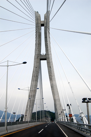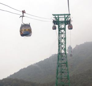 국내 최장 1,975m 길이의 미륵산 케이블카가 그곳. 통영관광개발공사가 개발 운영하고 있는 이 케이블카는 불교계, 환경단체, 정치인들의 끈질긴 반대에 부딛혀 수 년간 공사가 중단되는 어려움을 극복하고 2008년 4월 완공하였다. 기대와 우려 속에 개통 첫해인 2008년 누적 탑승객이 59만명을 기록한 것을 시작으로 일년에 120만 명의 이용객을 유치하므로써 통영의 경제에 크게 이바지하고 있다고 한다. 지난해 통영시가 일년 동안 거둬들인 세수와 맞먹는 1,200억원의 경제적 파급효과를 냈다. 환경을 훼손하지 않기 위해 지주를 1개만 설치하고, 사람들이 왕래하고 머무는 모든 구간에 나무 데크를 설치해 자연훼손을 최소화하고 편안한 휴식공간을 제공한다. 그러나, 무엇보다 관심을 끈 것은 각 전망대마다 조망 목표물 (박경리 묘소, 한산대첩의 바다, 통영 상륙작전, 당포해전, 등)에 대한 문화적 역사적 설명이 적힌 표지판들이었다 |