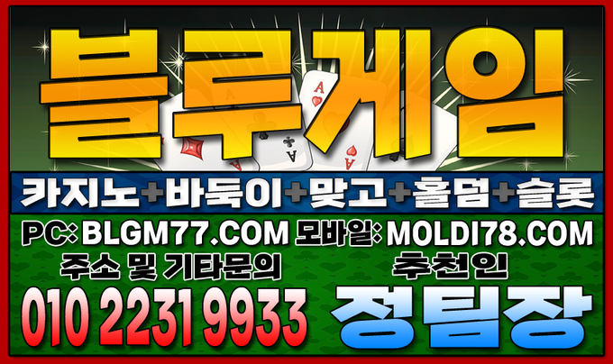 지금 바로 블루게임(바둑이,맞고,홀덤,슬롯,바카라)에서 검증된 온라인 게임을 시작하세요!정기적인 업데이트와 최신 정보 안내를 통해 항상 신뢰할 수 있는 서비스를 제공합니다. 소액 및 고액 금액에 관계없이 모두가 공평한 대우를 받으며, 타 업체 대비 높은 수익률을 기대할 수 있습니다.