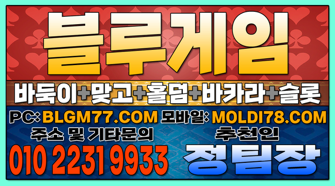 지금 바로 블루게임(바둑이,맞고,홀덤,슬롯,바카라)에서 검증된 온라인 게임을 시작하세요!정기적인 업데이트와 최신 정보 안내를 통해 항상 신뢰할 수 있는 서비스를 제공합니다. 소액 및 고액 금액에 관계없이 모두가 공평한 대우를 받으며, 타 업체 대비 높은 수익률을 기대할 수 있습니다.