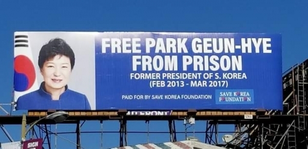 로스앤젤레스 한인타운에 세워졌다가 종북세력의 압박으로 내려졌던 박근혜 대통령 석방 광고 빌보드가 다시 올려졌다. 이 광고 빌보드는 로스앤젤레스 한인타운 올림픽 블러버드와 윌톤 코너 한 병원위에 몇달 전 걸렸는데 로스앤젤레스의 종북세력들이 항의를 하고 압력을 넣는 바람에 한달이 못되어 내려진 바 있다.