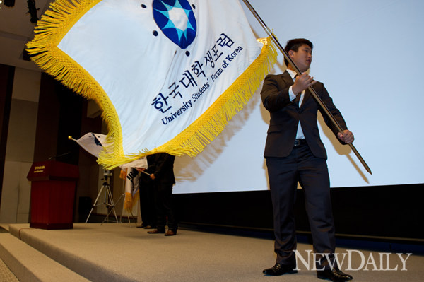 2009년 3월 설립한 <한국대학생포럼>의 슬로건은 "conserve & complete Korea"다. 대한민국의 가치를 지키고, 대한민국을 완성시킨다는 의미다. ■ 이들은 온갖 우여곡절에 시달려왔다. 단체의 설립 배경을 살펴보면 그 이유를 대충 짐작할 수 있다. "광우병 사태 등 우리나라의 정체성을 부정하려는 일부 주장이 진실인 것처럼 호도돼 활동을 시작했다." - 변종국 한대포 1기 회장 "광우병 시위" 당시 경찰도 두들겨맞는 판에 겁도 없이 덤벼든 셈이다. 그냥 "우리나라 대한민국"의 소중한 가치를 지키고 싶기 때문이란다. "자유민주-시장경제를 중시하니까 우리를 "보수 대학생 단체"라고 부르더군요." - 변종국 한대포 1기 회장 (http://www.newdaily.co.kr/news/article.html?no=56047) 겁이 없긴 정말 없나보다. 지난해 윤주진 한대포 2기 회장은 "백지연의 끝장토론"에 출연, "나는 꼼수다" 정봉주 전 의원과 치열한 토론을 펼쳤다가 네티즌들로부터 "실컷" 두들겨 맞았다. "어버이연합" 회원들이 신문을 주워 모아가며 모아 전달한 후원금을 한 번 받았다고 "극우적"이라는 이유에서다. 그런데도 괜찮다고 한다. 오히려 더 당당하게 활동하고 싶다고 한다. "나는 내 소신이 있고 그 소신을 우리 회원들과 토론하며 결정하지 누가 시킨다고 이런 일 하는 게 아니다." - 윤주진 한대포 2기 회장 (http://www.newdaily.co.kr/news/article.html?no=64915) 자꾸 새누리당 알바가 아니냐는 지적도 많이 받았다. 정작 "도움의 손길(?)"은 한번도 없는데도 말이다. 돈에 쪼들렸던 적도 한 두번이 아닌데 억울할 법도 하다. ■ "비인기 주제"를 어쩜 그렇게도 잘 찾아다니는지 조직 규모에 비해 관심도 제대로 받지 못해왔다. 천안함 사건이 터지고 난 뒤 "북한 정권을 규탄"하는 성명을 발표했다. "대학생 6.25 전쟁60주년 기념주간 추진위원회"를 만들어 21개 참전국 대사관을 방문, 감사편지 전달 행사를 열었다. 전쟁영웅 백선엽 장군을 초청해 강연도 가졌다. (http://www.newdaily.co.kr/news/article.html?no=62295) 이 뿐만이 아니다. 북한이 연평도를 포격한 날, 발빠르게 기자회견을 열어 정부의 "강력한 대응"을 촉구했다. 기습포격으로 숨진 고 서정우 하사와 고 문광욱 일병에게 보내는 안타까운 마음을 글로 엮기도 했다. 대학생들이 관심을 두지 않는 "국가 안보"에 지극 정성이다. (http://www.newdaily.co.kr/news/article.html?no=109940) 반값등록금이 대학생들 사이에서 하나의 "유행"처럼 번지고 있을 시점에도 당당히 "아니다"라고 밝힌다. "자기의 일은 스스로 하자"는 당연한 얘기가 통용되지 않는 요즘, 참 "배부른 소리"하는 대학생들이 분명하다. (http://www.newdaily.co.kr/news/article.html?no=82139) ■ 박종성 회장 "한대련 해체-종북의원 사퇴 촉구하겠다" 이날 행사에서 박종성 한대포 회장은 "우리 할아버지 할머니, 아버지 어머니 세대가 맨 손으로 일군 위대한 대한민국 그 자체다. 우리 선조들의 피와 땀이 우리에게 요구하고 있다"며 다음과 같이 결의했다. #1. 우선 박 회장은 "대학가를 정치의 장으로 멍들게 하는 <한국대학생연합>과 <다함께> 같은 운동권 조직을 해산시켜야 한다"고 목소리를 높였다. "우리 대학생들이 나서서 올바른 대학사회가 존재할 수 있도록 힘써야 합니다. 다시는 이러한 정치조직, 종북세력이 대학사회에 들어와 순수한 학생들, 꿈이 가득한 청춘들을 선동하지 못하게 막아야하고 정치권의 더러운 손길이 학내에 얼씬도 못하게 해야 합니다. 한국대학생포럼이 앞장서겠습니다. 한국대학생포럼은 한국대학생연합과 같은 정치조직, 선동조직, 북한을 추종하는 조직, 국가와 국민보다 북한 김씨 일가가 먼저인 조직을 반드시 해체시키겠습니다." (http://www.newdaily.co.kr/news/article.html?no=113689) #2. 이어 "대한민국의 정체성을 부정하고 대한민국을 전복시키려는 종북 세력들을 저지하고, 더욱이 종북 국회의원들을 사퇴를 촉구하겠다"고 강조했다. "종북 국회의원의 사퇴를 촉구하고 사퇴시키겠습니다. 우리의 선조들이 목숨 다 바쳐 지켜낸 대한민국입니다. 이 대한민국을 북한에게 팔아넘기려는 저 종북 국회의원들을 어떻게 그냥 쳐다만 볼 수 있겠습니까? 저는 10월부터 회원들과 함께 종북 국회의원이 사퇴하는 그날까지 대한민국을 지키기 위해 국회 앞에서 종북 국회의원 사퇴 문화제를 열겠습니다." (http://www.newdaily.co.kr/news/article.html?no=113224) ■ 문유진 부회장 "우리가 바라는 대한민국의 내일" 문유진 한대포 부회장은 "대통령을 뽑는 것은 인기투표가 아니다. 신중하고 냉정하게 판단해야 한다"며 다음과 같은 지도자상을 언급했다. #1. 문 부회장은 "대한민국을 발전시킬 지도자를 원한다"고 했다. "대한민국의 100년 후를 바라본다면 조금 더 현실적으로 대한민국의 경제 발전에 이바지할 지도자가 필요합니다. 진정으로 필요한 사람들에게 혜택이 돌아갈 수 있는 선별적 복지 체계를 구축하고 기업과 가계가 공존할 수 있는 시스템을 완성할, 소신 있는 정책을 제안할 수 있는 그런 사람 말입니다." #2. 이어 "대한민국을 끌어안을 지도자를 원한다"고 했다. "정부가 하는 일이면 우선 의심부터 하는 국민 정서를 만든 것은 바로 과거의 부족한 지도자들이라고 생각합니다. 국민들에게 신