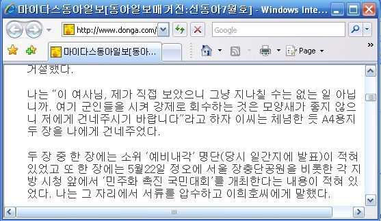 그날 평민당이 출석시킨 정기용 씨를 정기용 씨를 김대중 내란 음모 사건 담당 군 검찰관으로 출석시키고 심문함으로써 시청자에게 두가지 착각을 불러일으킨다. 첫째로, 전두환 보안사령관이 김대중 내란음모 수사를 주도했다는 착각을 불러일으키고, 둘째로, 김대중이 정동년에게 오백 만원을 준 혐의로 사형이 사형이 구형되었던 것으로 착각하게 만든다. 이것은 5.18기만자들이 연출한 쇼였으며, 진실에 있어서 전두환 장군은 김대중 내란음모 수사에 관여한 적이 없었다. 전두환의 보안사령관 임기는 1980년 4월에 끝났으며, 6월에 후임자 노태우에게 인수인계함으로 완전히 끝났다. 그리고 7월 김대중에게 사형이 구형되었던 것은 광주사태 때문이 아니라, 김대중이 한민통이란 반국가단체의 수괴였기 때문이었다. 지금 미국에서도 테러 단체 등 반국가단체 연루자들에게는 사형이 구형되고 있음을 우리가 보지 아니하는가. 그간 5.18기만자들이 어찌나 사기를 쳤던지 5월 17일에 전 장군이 김대중을 연행하였기 때문에 그 다음날 광주사태가 일어났던 것으로 잘못 알고 있는 이들이 많다. 그러나, 5월 17일 밤 김대중 연행의 주체는 당시 중장정보부 총무국장으로서 김대중의 심복이었던 이종찬이었다. 그는 쿠데타를 일으켜 김대중을 군주로 세울 기회를 노리던 자였는데, 5월 16일 일부 대학생들이 5월 22일로 예정되어 있었던 김대중 내란음모 주동자들 명단을 치안본부에 넘기자 김대중 보호작전으로서 김대중을 연행하여 수사정보를 조작하였던 것이다. 김대중 내란음모 담당 수사관은 김대중의 심복 이종찬의 부하 이기동이었다. 그는 전남 광양 사람이었는데, 전남에서도 광양, 순천, 광주, 무안, 목포 출신들은 동향 출신이라는 연대감을 가지고 있었다. 김대중 정부가 엄청난 혈세를 낭비하면서 이용자 없는 무안공항을 지은 것도 바로 그런 지연 때문이 아니었던가? 김대중 내란음모 담당 수사관이 바로 이런 지연으로 얽힌 이기동이었으며, 그후 그는 김대중 가문의 가신과도 같은 관계를 유지하였다. 이기동씨에게 수사를 맡긴 것이 김대중에게 유리했으니깐 훗날 김대중이 이종찬에게 김대중 후보 선거위 위원장, 김대중 정부 인수위 위원장, 김대중 정부 초대 국정원장 등의 중책을 맡김으로 보은하였던 것이 아니었던가! 5월 17일 김대중 연행에 헌병들이 동원되었으나, 그 인솔자는 김대중 보호작전의 특명을 받은 이기동씨였다. 그는 김대중 연행과정을 이렇게 진술한다: <이날 밤 10시가 조금 지나 진과장과 김수사관, 그리고 나는 승용차 편으로 헌병 1개 분대를 실은 트럭을 인솔하여 동교동으로 향했다. 김대중씨 집 근처에서 대기하던 중 밤 11시30분을 기하여 평소 김대중씨 집을 수시로 방문한 바 있는 김수사관이 초인종을 눌렀다. 김대중씨의 비서는 김수사관을 확인한 후 자연스럽게 대문을 열어주었다. 나는 헌병 분대 (장교 1명, 사병 18명)를 이끌고 순식간에 대문을 박차고 뜰로 들어섰다. 그와 동시에 아래채(비서실 겸 숙소)에 있던 김대중씨의 개인비서 10여명이 마당으로 몰려나와 김대중씨를 보호하려 했으나 이미 착검한 헌병들이 본채와 아래채의 중앙을 일렬로 막아 차단했기 때문에 고함소리만 요란할 뿐 본채로 접근하지는 못했다.> (http://www.donga.com/docs/magazine/new_donga/9907/nd99070020.html 에서 작은 제목 "아, 김대중 쪽을 맡는구나" 마지막 두 단락.) 이어 이기동씨는 김대중의 내란음모의 결정적인 증거물이었던 "예비내각명단"을 어떻게 자기 선에서 처리함으로서 김대중을 보호해 주었는지를 이렇게 진술한다: <나는 오대위에게 밖에 대기하고 있는 승용차까지 김대중씨를 안내하고 대기중인 수사관에게 김대중씨를 정중히 남산으로 모시라고 지시한 후 이희호씨를 만나기 위해 거실로 올라섰다. 막 거실로 올라서는데 약간 열려 있는 안방 문틈으로 이씨가 화장대 서랍 속에서 무언가 꺼내 황급히 핸드백 속에 넣는 게 보였다. 핸드백을 들고 태연히 방에서 나온 이씨는 아직도 볼일이 남았느냐며 자신은 잠시 밖에 좀 나갔다 오겠다고 했다. 나는 잠시 자리에 앉으라고 한 후 “이 여사님, 우선 안방에서 핸드백 속에 넣으신 서류를 저에게 건네주셨으면 합니다”라고 말했다. 이희호씨는 “핸드백에 무엇을 넣었다고 그래요? 화장품 좀 챙겼는데…”라며 핸드백 열기를 완강히 거절했다. 나는 “이 여사님, 제가 직접 보았으니 그냥 지나칠 수는 없는 일 아닙니까. 여기 군인들을 시켜 강제로 회수하는 것은 모양새가 좋지 않으니 저에게 건네주시기 바랍니다”라고 하자 이씨는 체념한 듯 A4용지 두 장을 나에게 건네주었다. 두 장 중 한 장에는 소위 ‘예비내각’ 명단(당시 일간지에 발표)이 적혀 있었고 또 한 장에는 5월22일 정오에 서울 장충단공원을 비롯한 각 지방 시청 앞에서 ‘민주화 촉진 국민대회’를 개최한다는 내용이 적혀 있었다. 나는 그 자리에서 서류를 압수하고 이희호씨에게 말했다.> ((http://www.donga.com/docs/magazine/new_donga/9907/nd99070020.html 에서 작은 제목 "이희호씨 핸드백 속의 문건 압수" 일곱째 단락부터 네 단락.) |